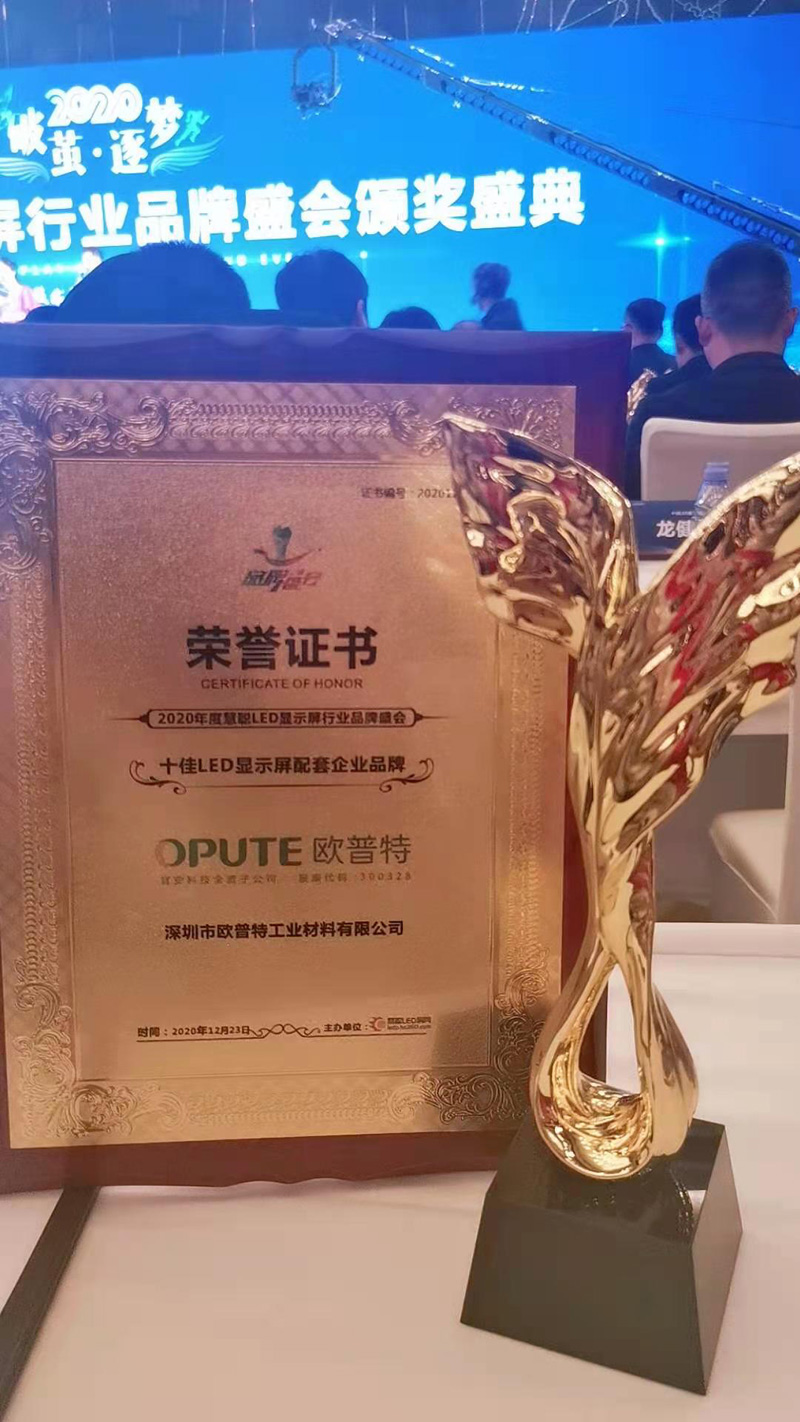 輝煌時(shí)刻,歐普特再度獲得2020年度十佳LED顯示屏配套企業(yè)品牌.